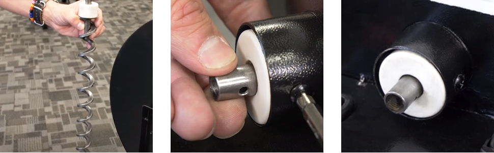 - Put the motor bracket/Bushing on the end of the auger and push it into the shaft, alignment position, then secure the auger with the 7/16” screw.